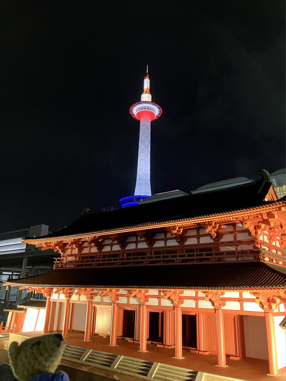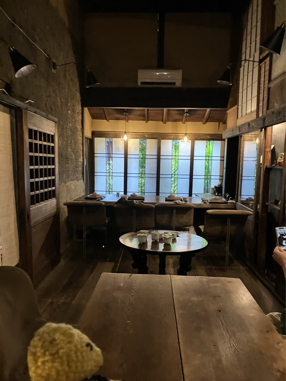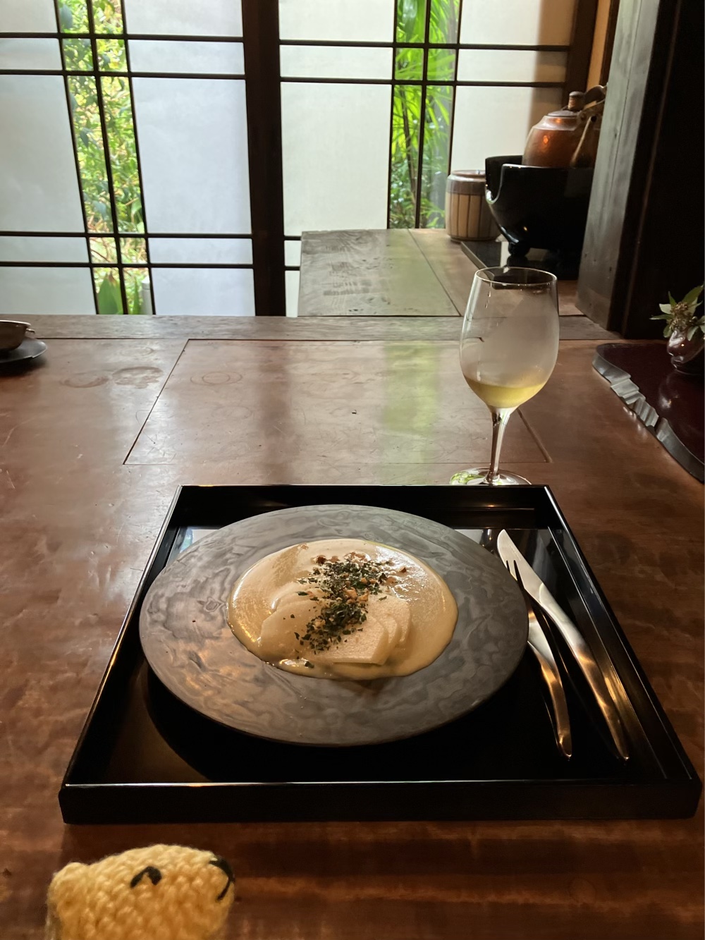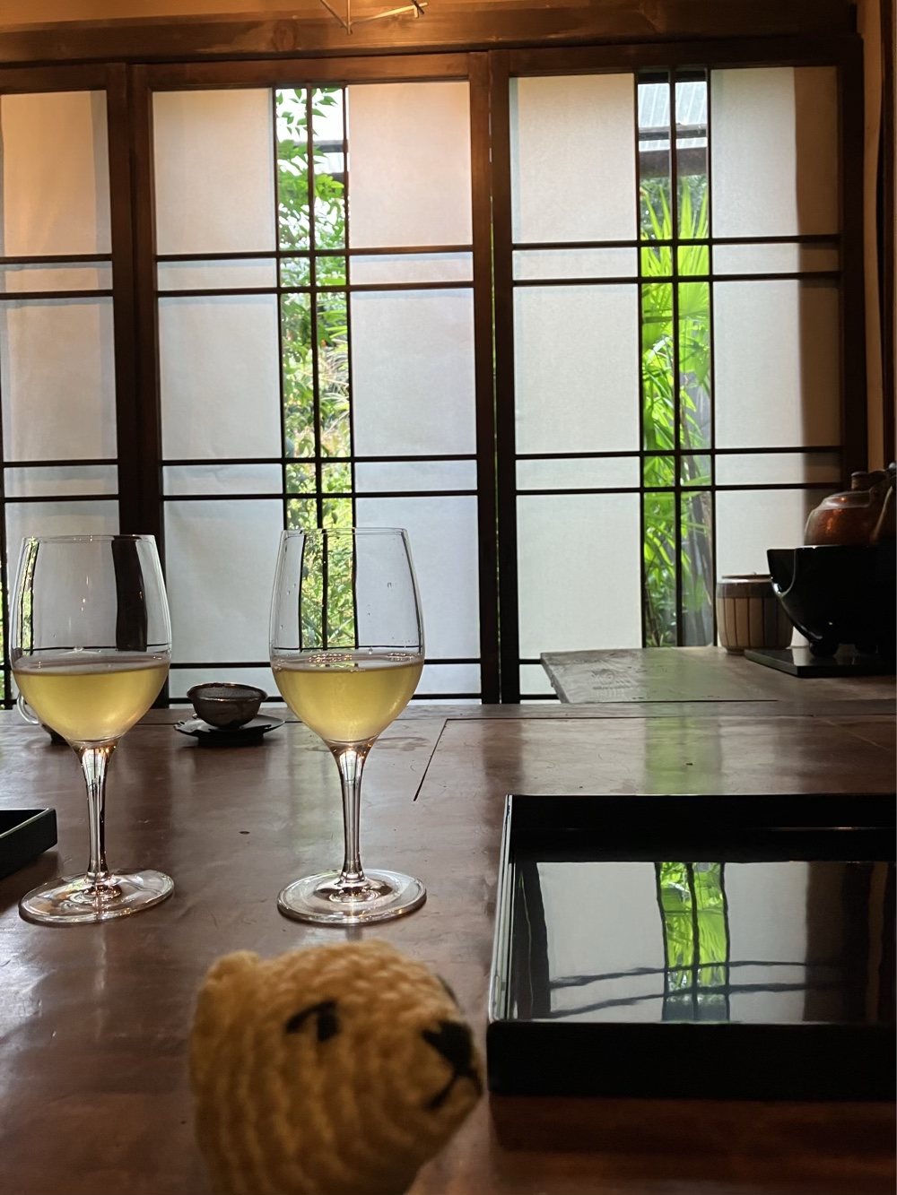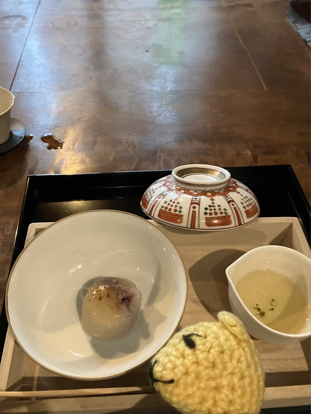 東寺近くの◯間へ。甜茶と美作番茶ブレンド、東方美人、嬉野緑茶にオリジナルお菓子で