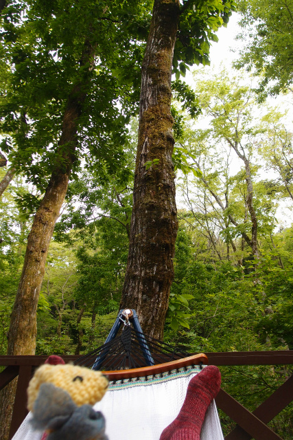 新緑の森のなかで、ゆったりハンモック。