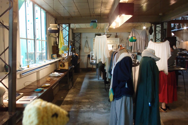 涼しげなアプローチから中に入ると、すっきりと心地よいお洋服がお出迎え。