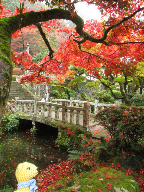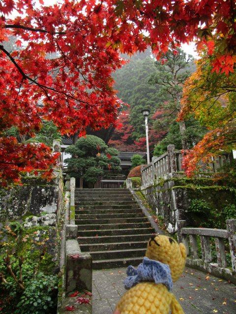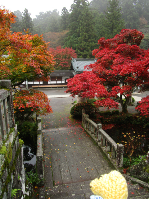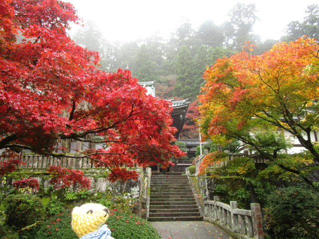 天狗のお寺は靄がかかっていて、いっそう赤が美しかったです。