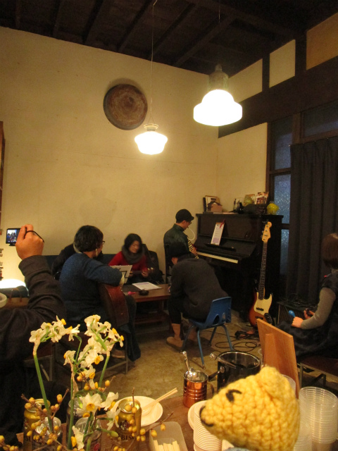 モリメシで食べてじっくり語ったあとは、nicocafeでローガンズライブ付の持寄り忘年会。