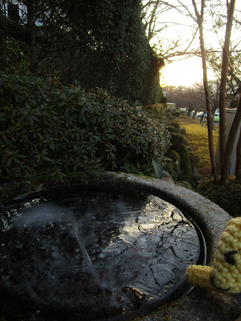 いったん凍るとなかなか溶けない日陰の氷。 ガチガチはいつとけるかねぇ。