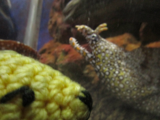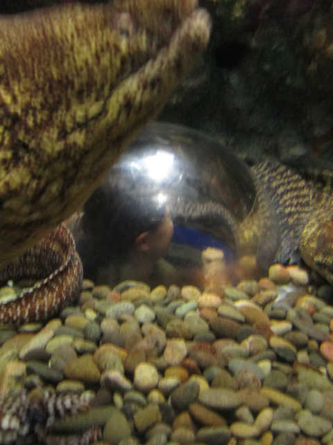 ウツボの水槽の下にもぐって覗けるにょろドーム!