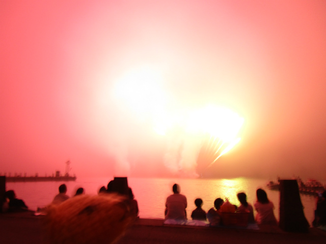 昨年も霧の夜だった芦ノ湖。今年もすごい濃霧の中での音花火。目の前にあがっているのに全く
