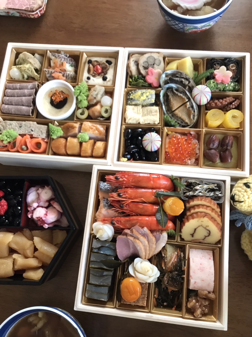 去年に味をしめて今年も婦人画報の冷凍おせちをお取り寄せ。和洋の三段重。