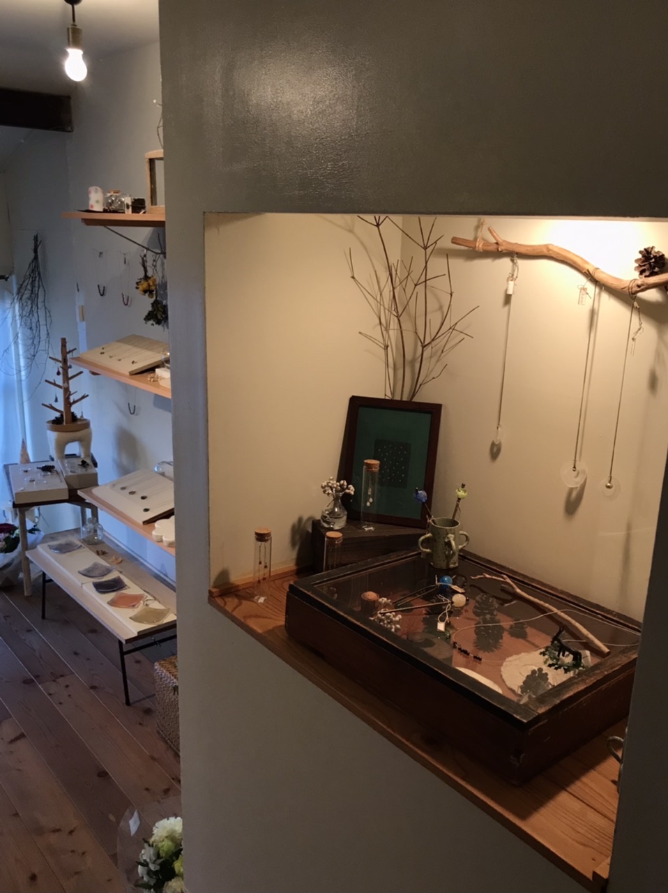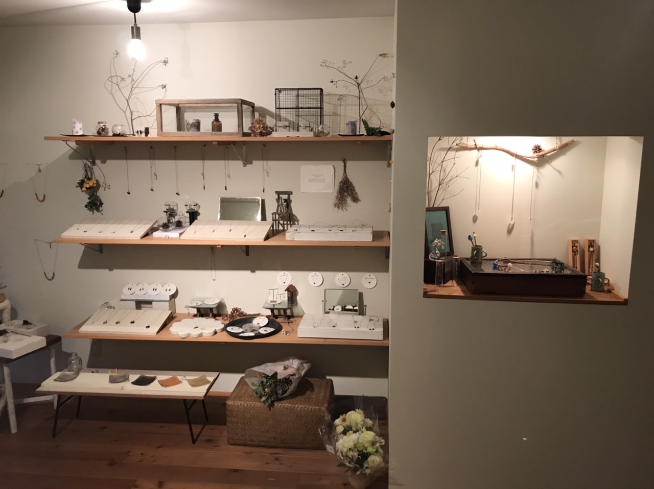 ガラスアクセサリーとジャムがメインのすっきりかわいいお店。