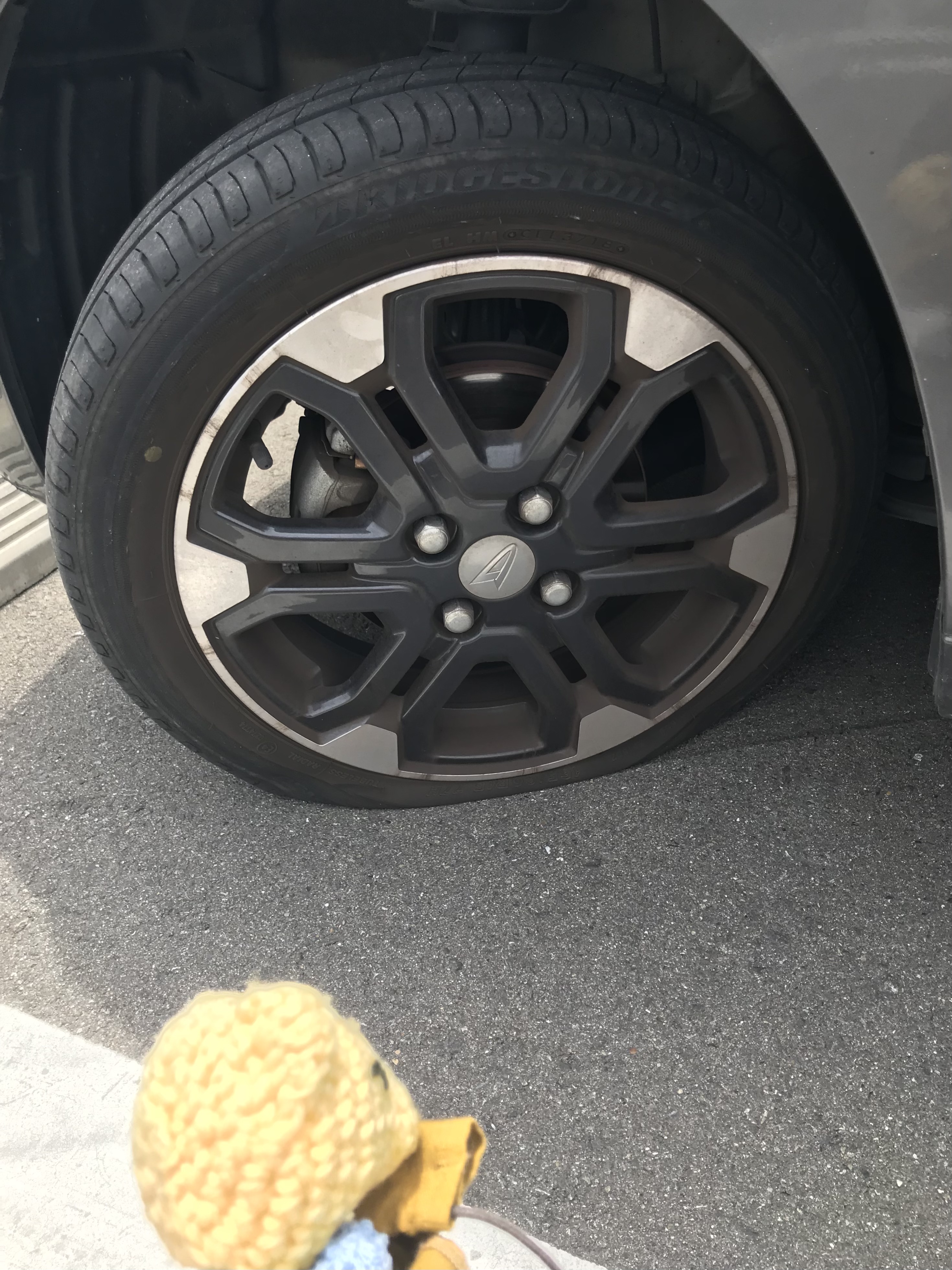 出先でタイヤパンク。スペア積んでないタイプの車種なためロードサービスのお世話に。