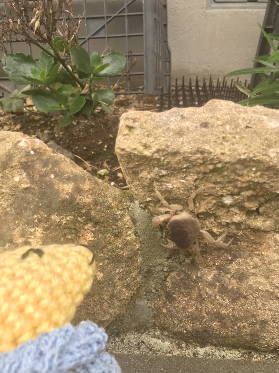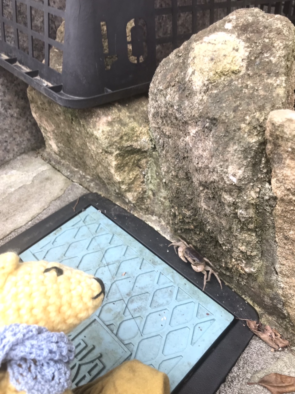 朝、玄関を出たらカニがいたまさかと思ったけどカニだった。