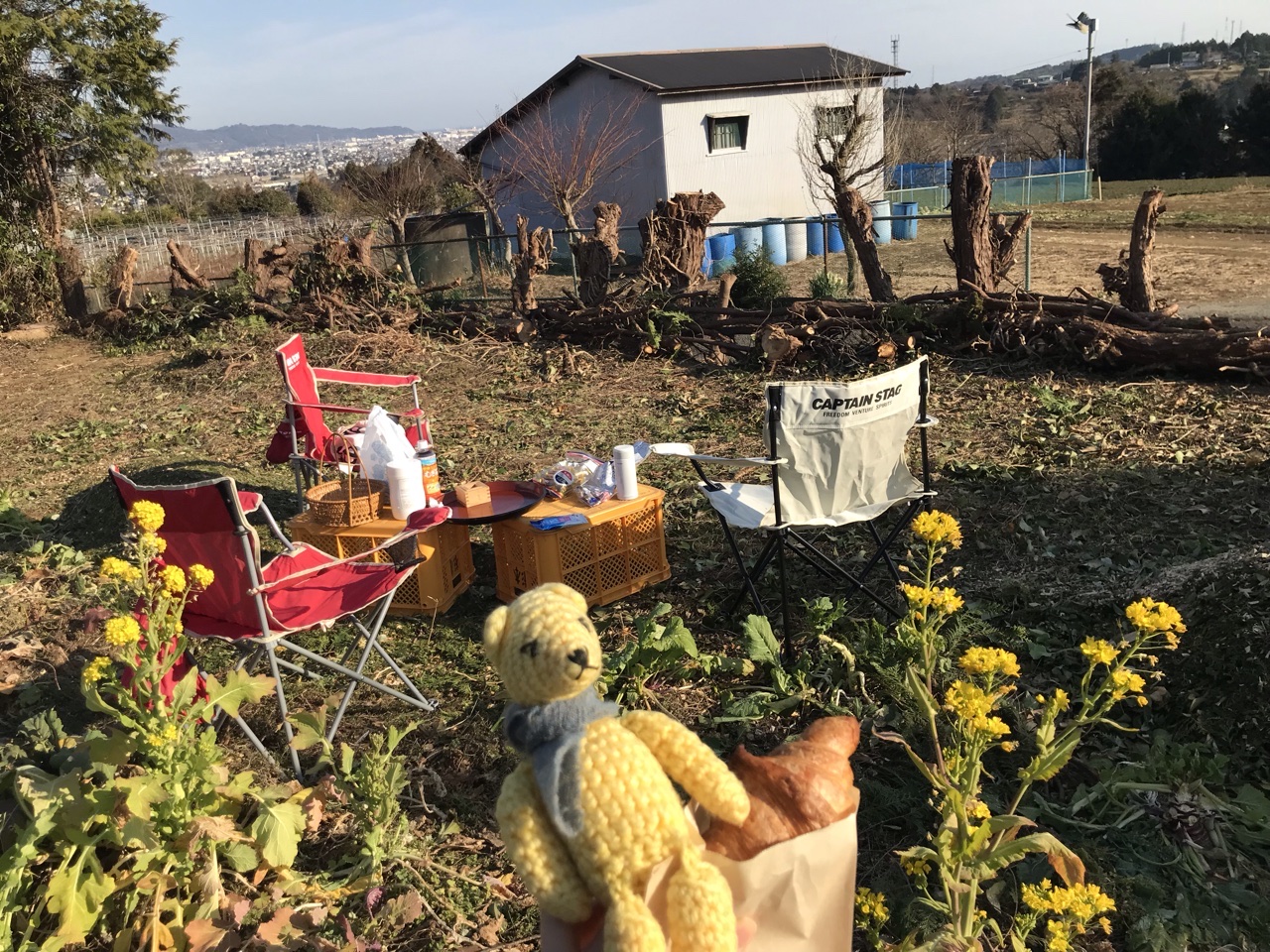 昨日の午後はキンカンもぎの休憩に焼きたてのクロワッサン登場!冬のピクニック気分。
