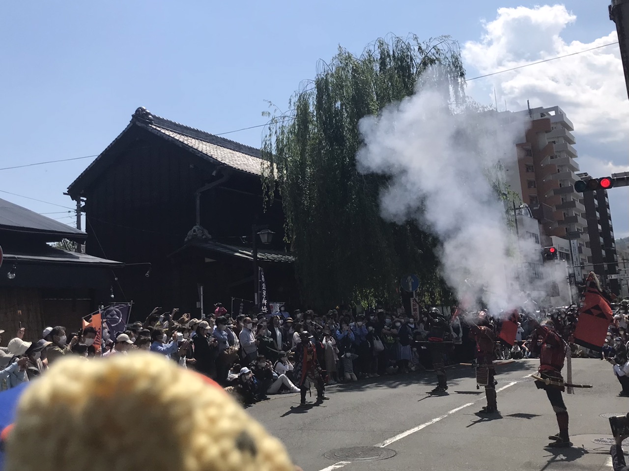 5月晴れの下、鉄炮隊や武者行列や縁日のまつりの雰囲気を存分に味わいました。