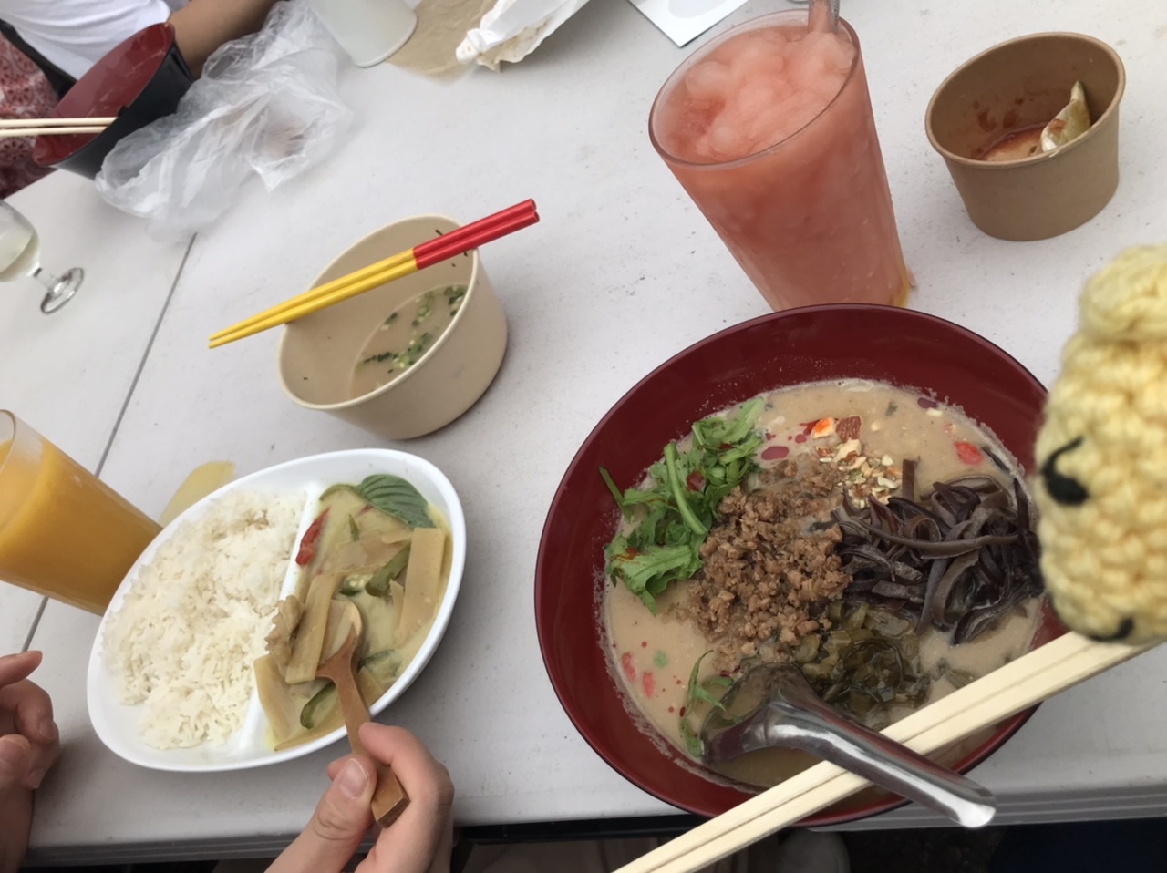 朝方までの雨もあがって、とてもいい雰囲気の会場。で堰を切ったように食べまくるw