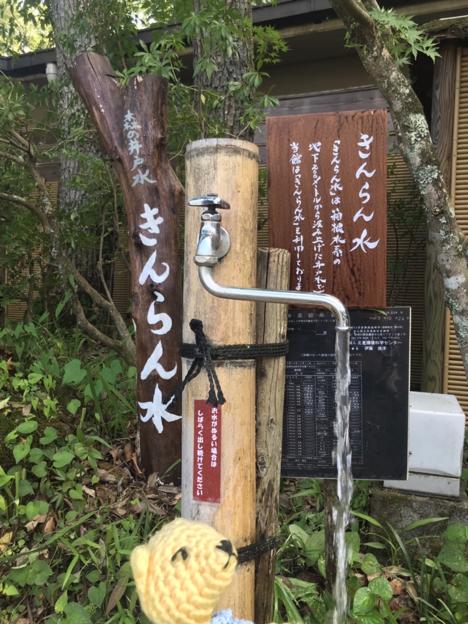 きんらん水の汲み場。注意書きに「お水がぬるい場合はしばらく出し続けてください」と。