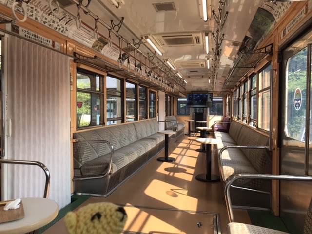 箱根登山電車の引退車両のカフェ、CAFE107。先日タイミングよく貸切状態でした。