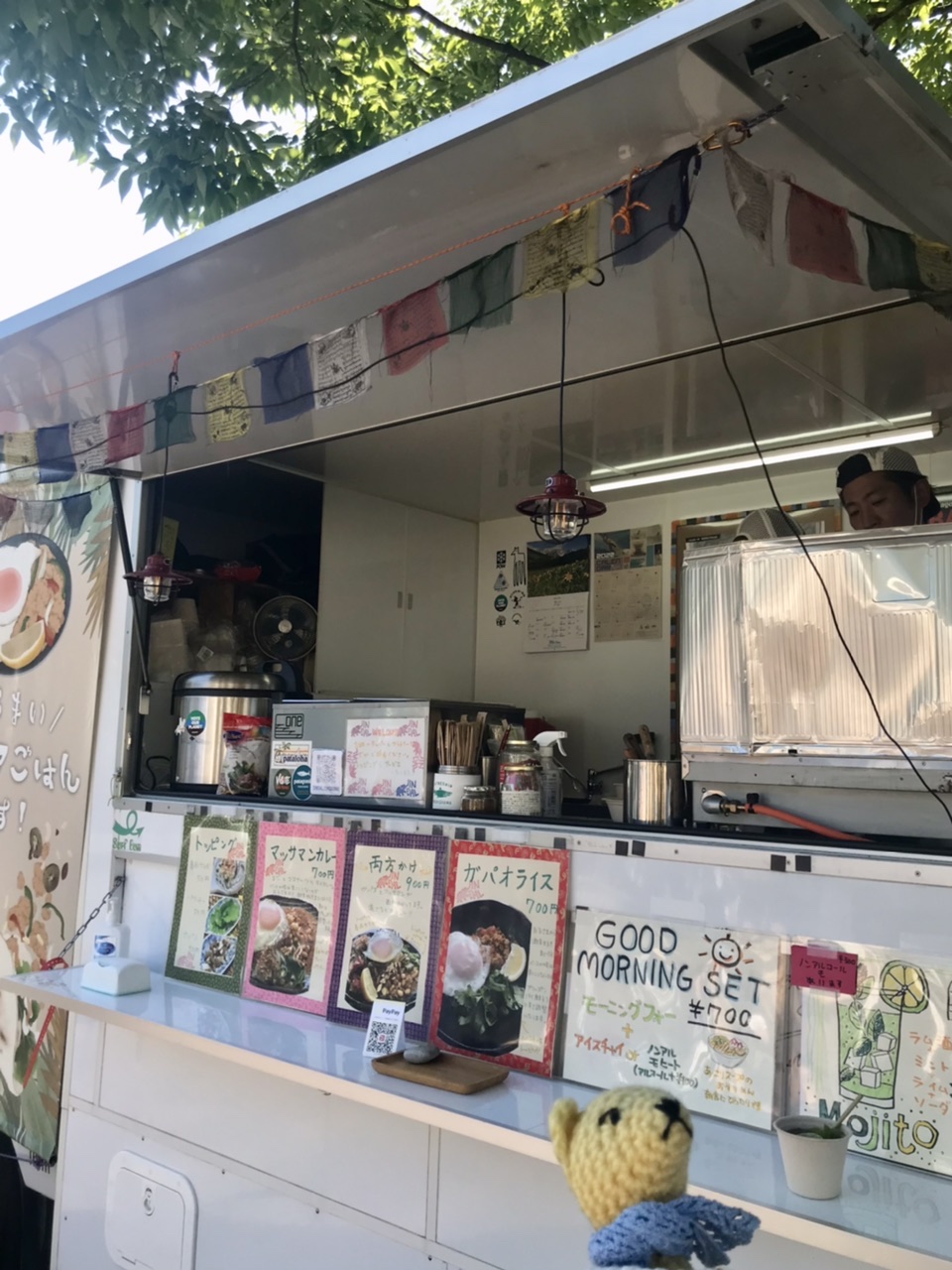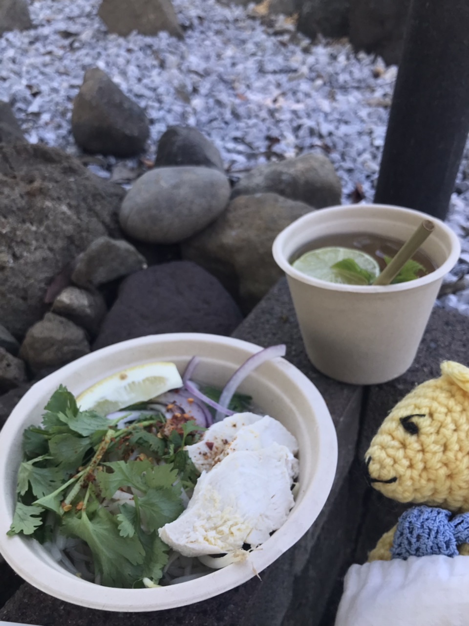 キッチンカーはモーニングメニューも色々あり楽しい。フォーとノンアルモヒートで朝ごはん。