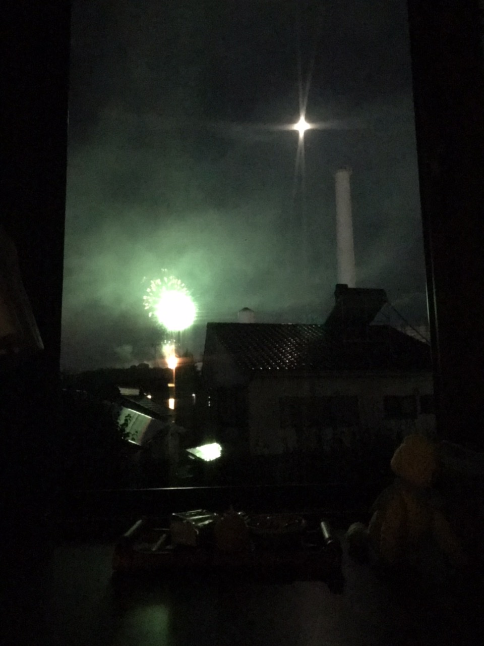 部屋の窓からのんびり花火。なんだかんだで一番ありがたい花火鑑賞のスタイル。