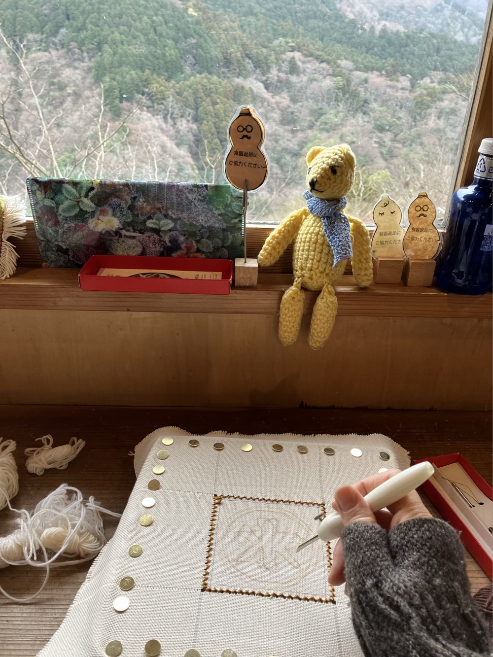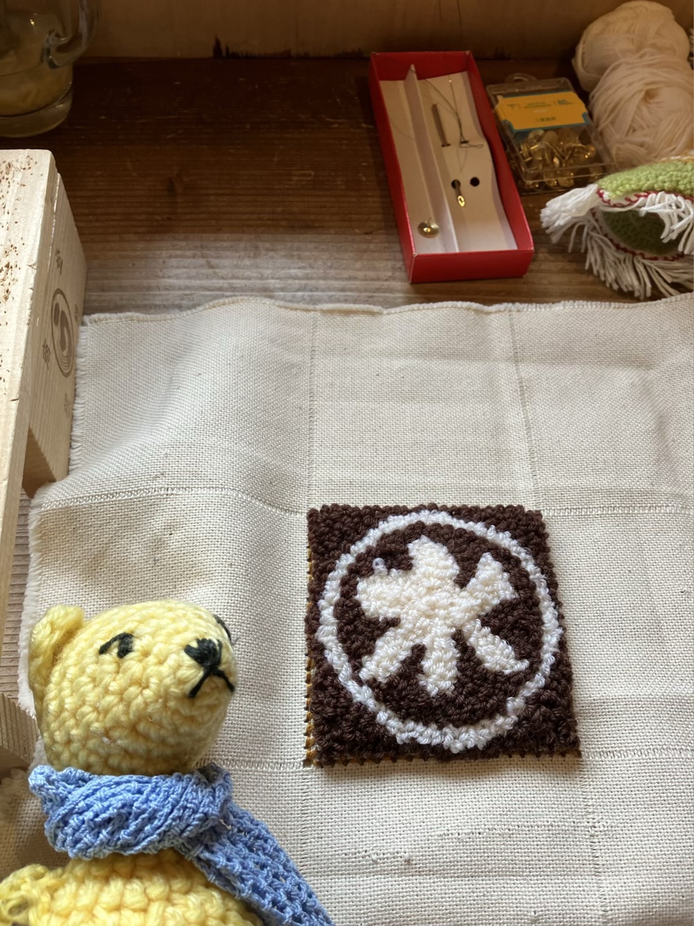 ザクザク布に刺していく。2時間ほどでコースターができました!楽しい^ ^
