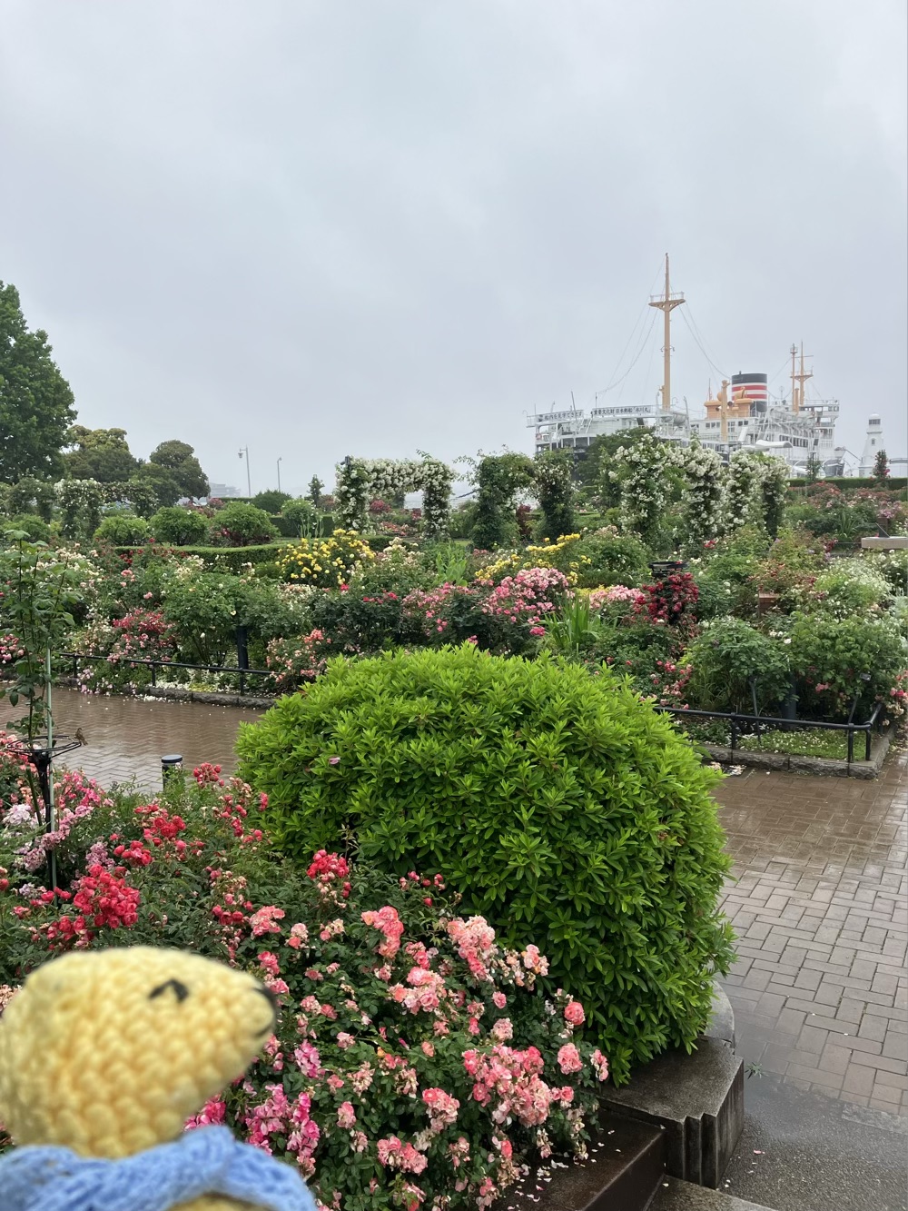 バラ園や氷川丸を見たり、お散歩中のワンコと遊んだり、船長ごっこしたり。充実の朝でした。