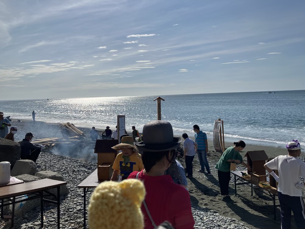 小田原の海でのお盆行事、お精霊流しを今年も見学に朝から出かける。