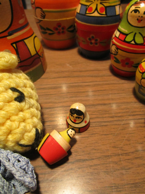 マトリョーシカの最後の子。他の子たちはパッチリお目々に赤い唇。でもこの子は目と口が、線。