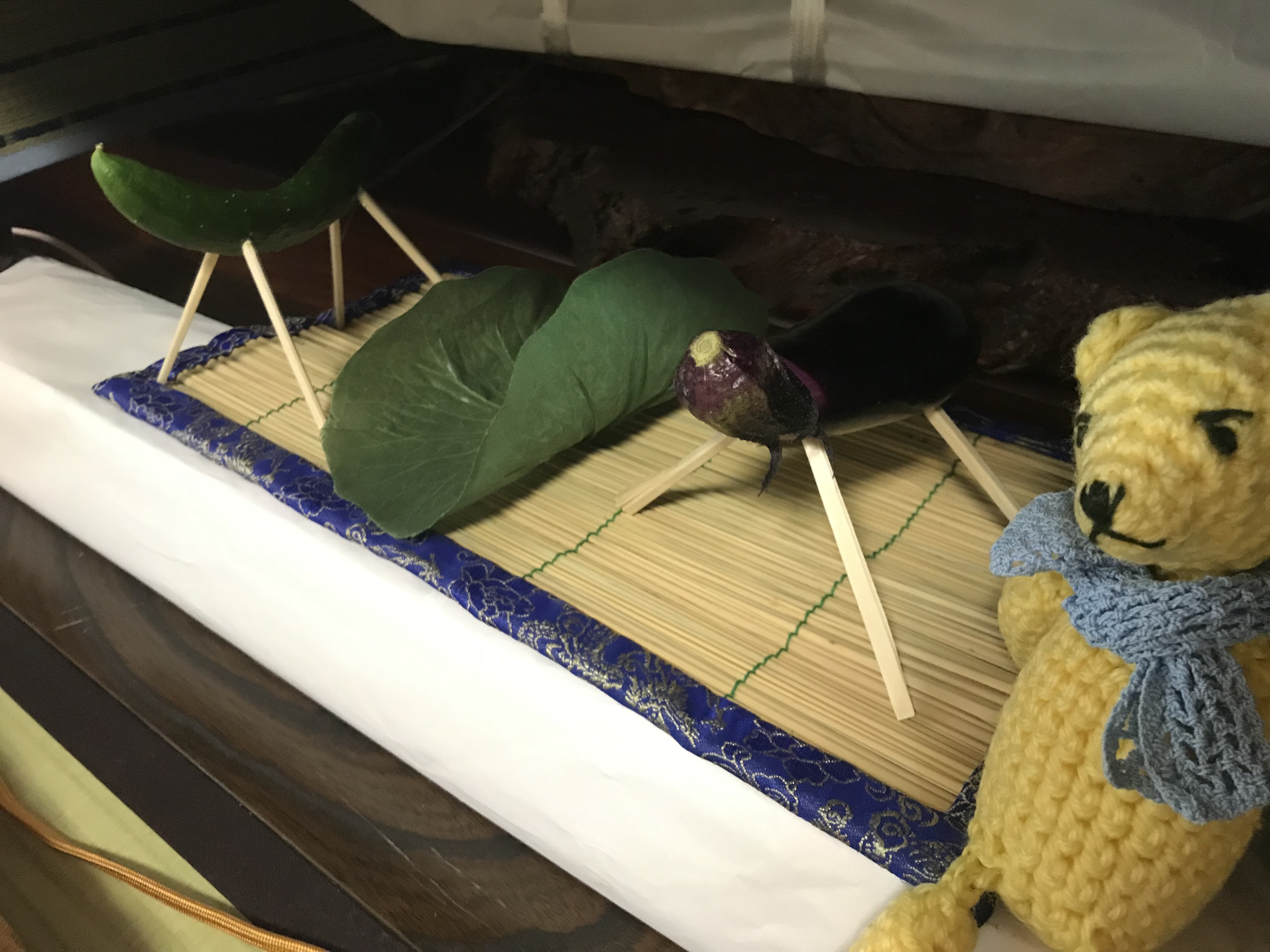 お盆のきゅうりの馬となすの牛。たとえ由来は知らなくても、こういう親しみやすくて