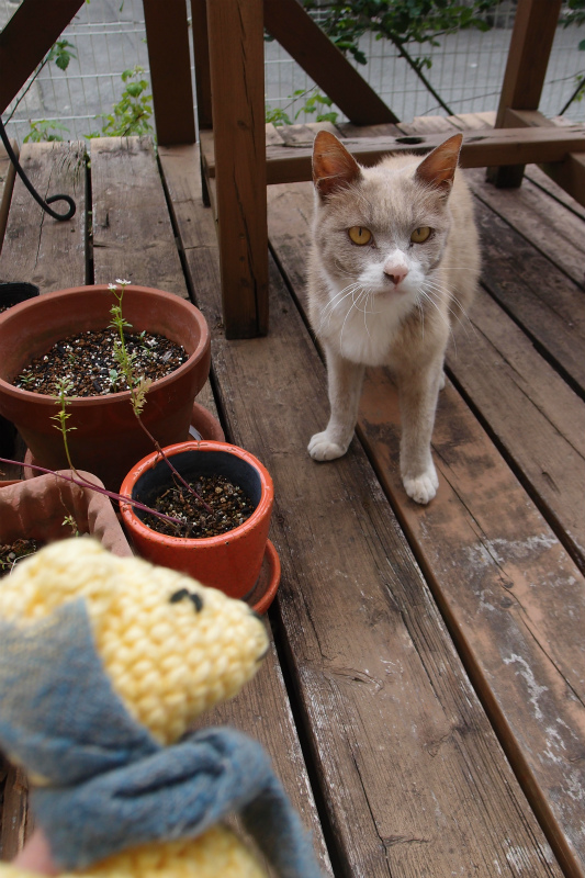 グレーと茶色の中間のような、綺麗な色の猫に会った。