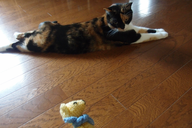 ぺったりまっすぐ伸びるグニャンちゃん。