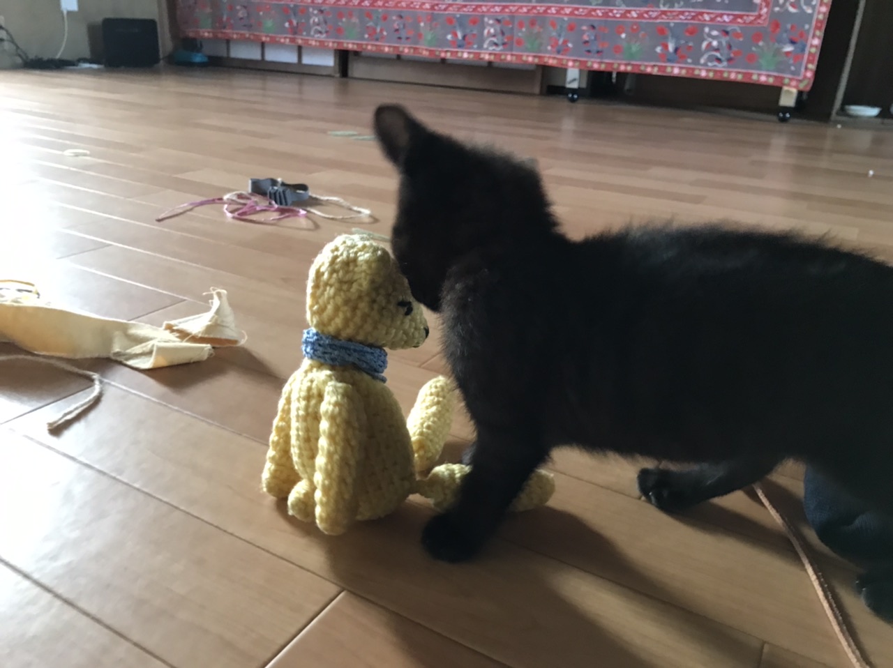 子猫を預かり中の友人宅へ。2ヶ月ちょいの黒猫のタンゴくん、もー可愛いのなんの!