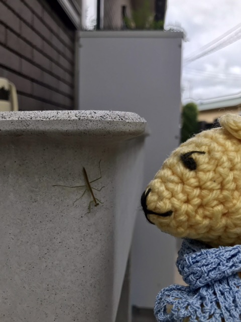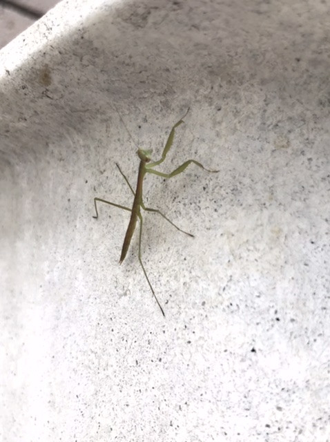 外の流しで、視野になんかふわふわしたものがと思ったらちびっこカマキリ。