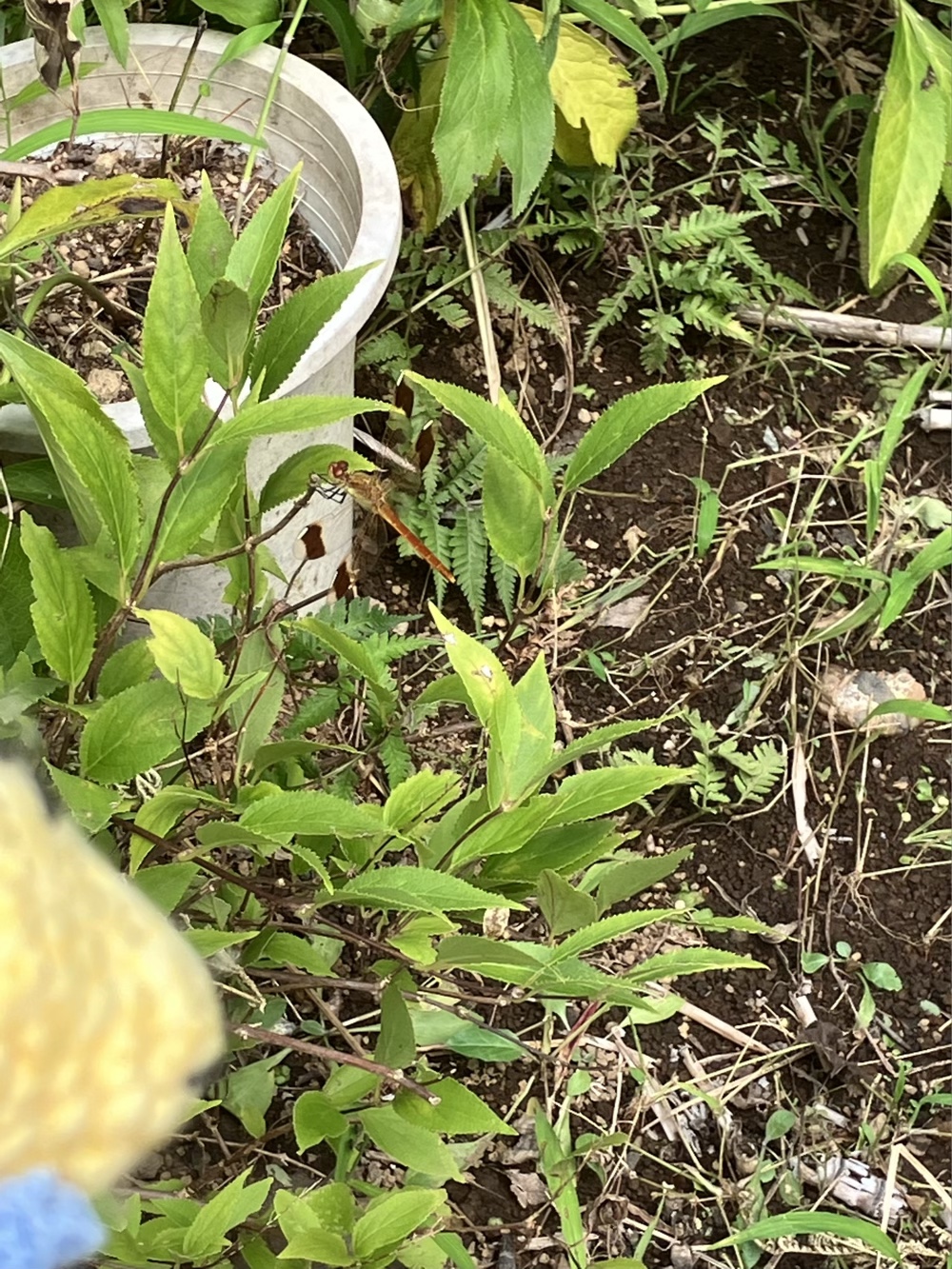 昨日シオカラトンボを久しぶりにみた。今日は赤トンボがいた。