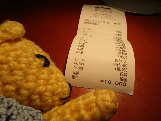 ガラパゴレーシングでお疲れ様会。3人で飲んで食べて会計したら「ミラクルです!」と。