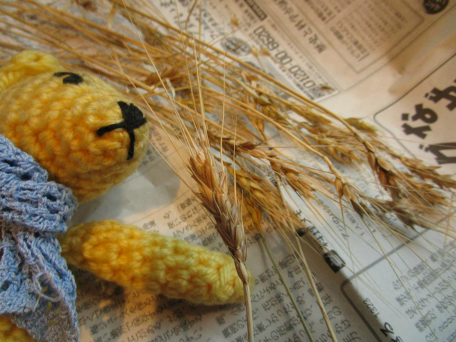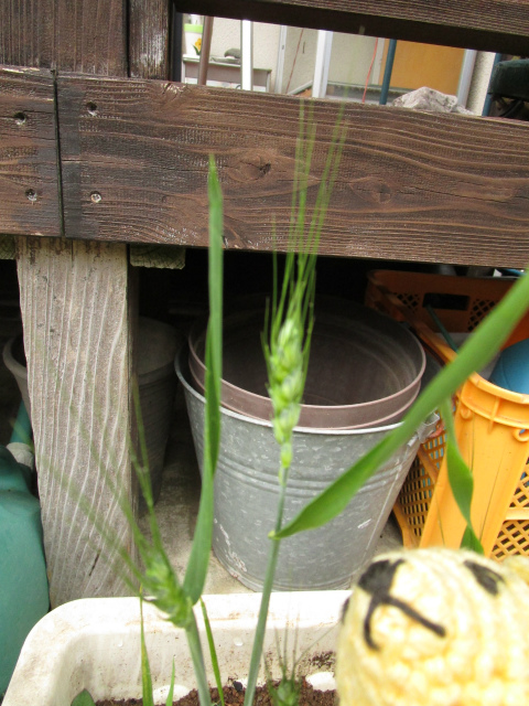 年末にシュトレンについていた一本の麦の穂。種をまいたらちゃーんと育って収穫できました。