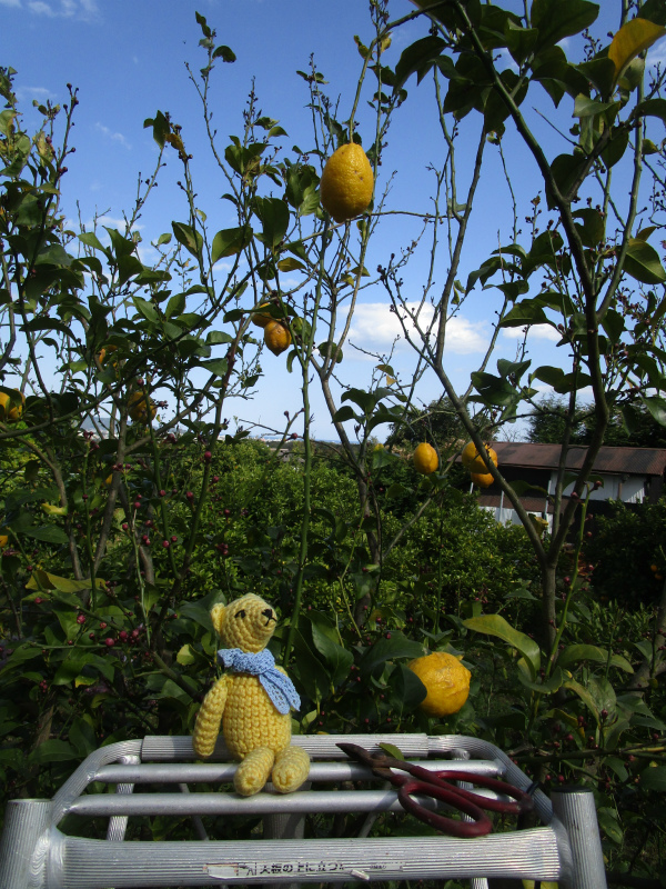 檸檬の木のてっぺんに一個、レモンがぶらぶら。