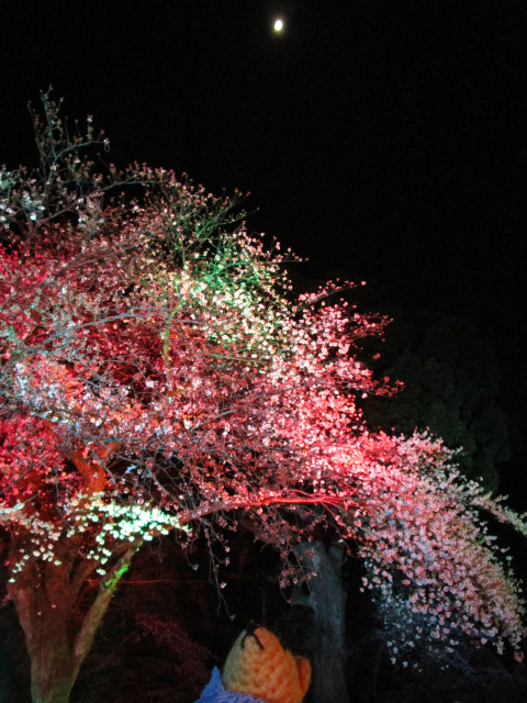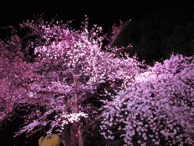 ライトアップもやっていて、うすピンクの桜が別の色に変化する幻想的な夜桜でした。