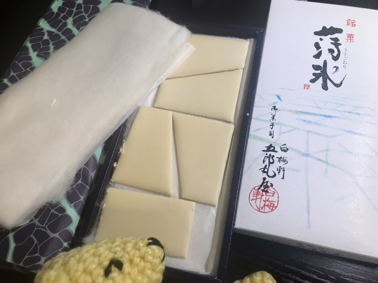 富山の銘菓、薄氷をいただいた。真綿に守られた和菓子って初めて!