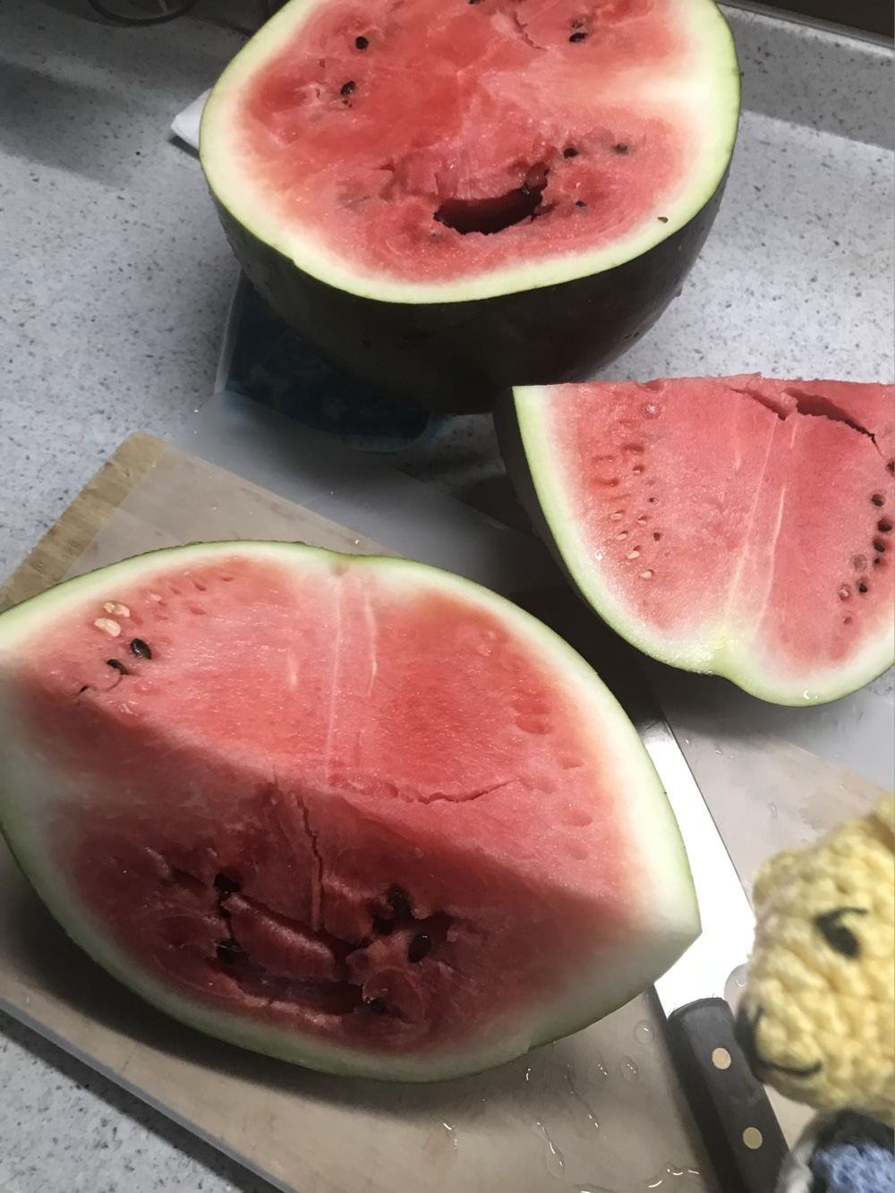 お盆が終わると果物が豊富。丸ごとスイカはキレイに真っ赤で甘くてとても