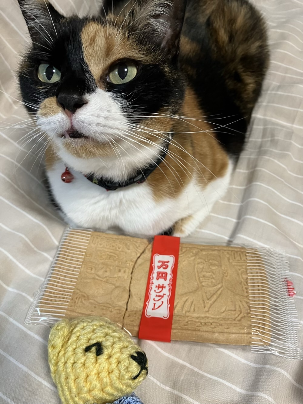 大事に持って帰ったのに、バッグの上にグニャンが乗ってあっさり真っ二つに。残念!