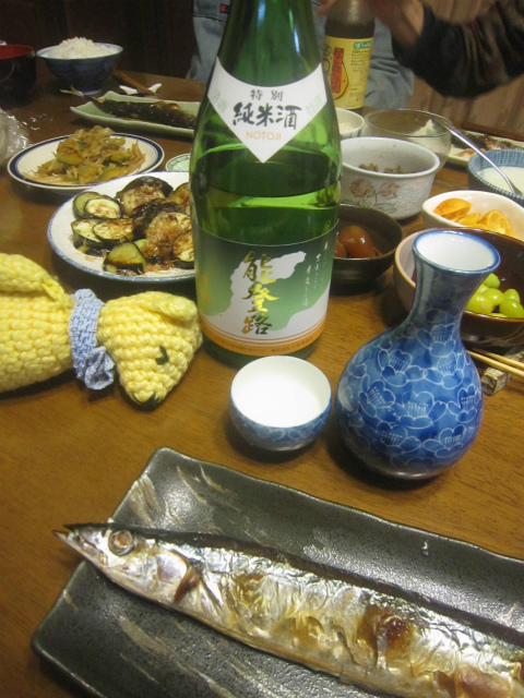燗の能登路と秋刀魚と銀杏と茄子と。