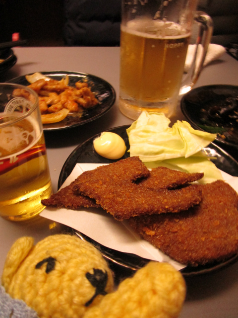 くまざわやのレバカツ、ほんと最高。スーパー木耳炒めも、このボリュームってすごい。