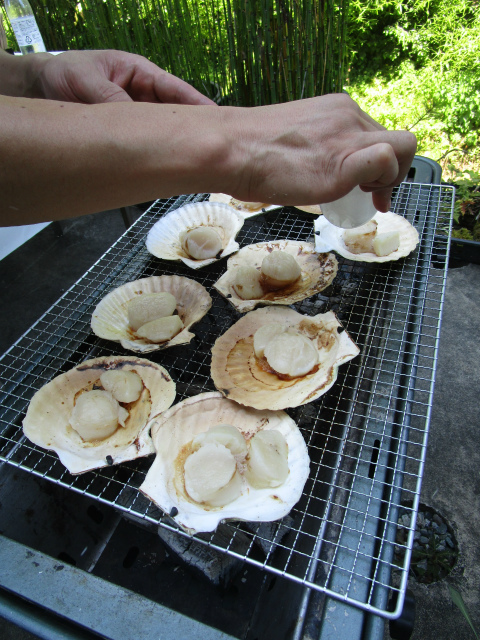 青森からどどーんと届いた帆立を中心にすえられたBBQ大会。豪勢〜!