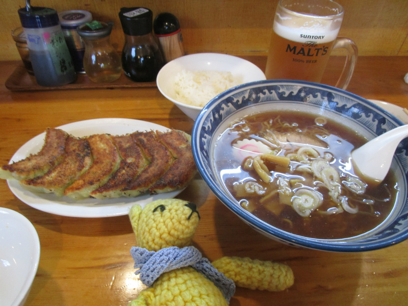 ラーメン&スタミナ餃子&ビールの黄金トライアングル!そして半ライスもね。