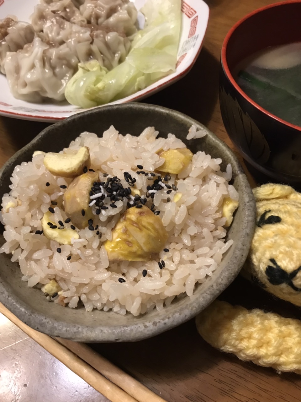 畑の栗がポツポツ落ち始め。20粒集まったので初モノで栗ご飯。