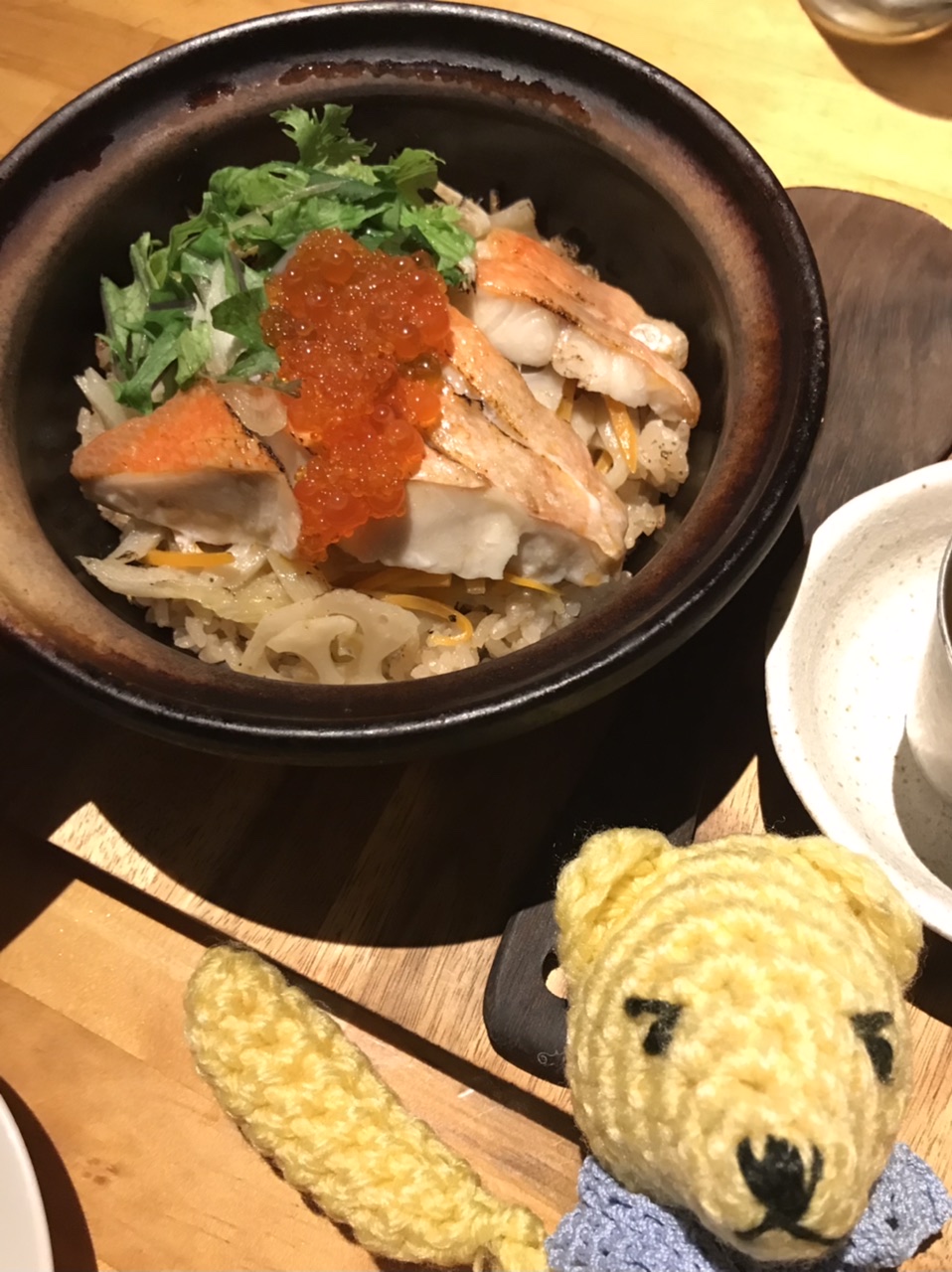 金目鯛と白エビの砂鍋ご飯は、イクラとトビッコのトッッピングまであっていきなり豪華!