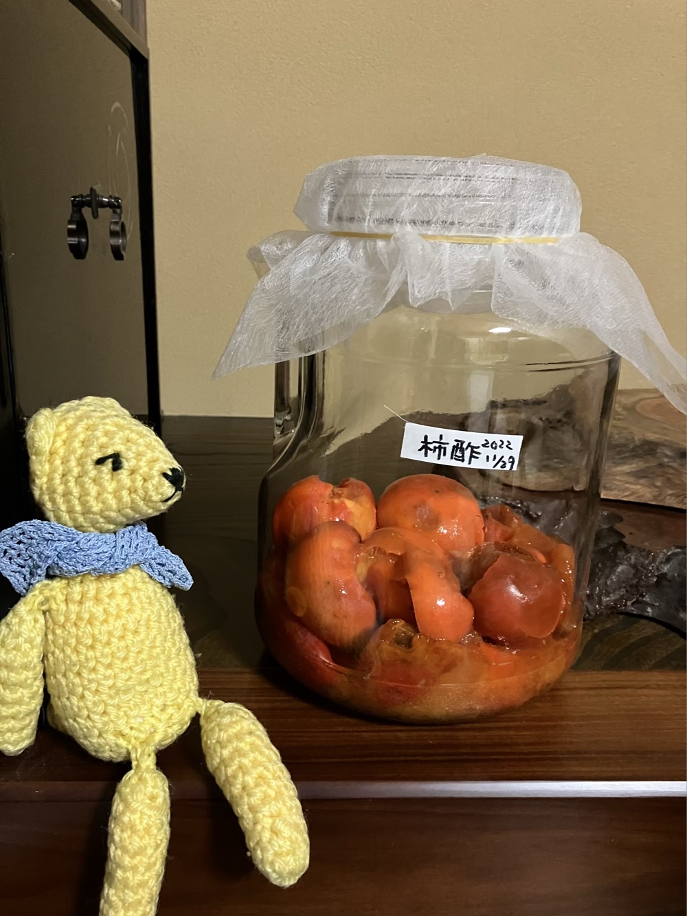 柿酢。以前作ろうとしたけど、数日後見た目が怖すぎてギブアップしたことがある。