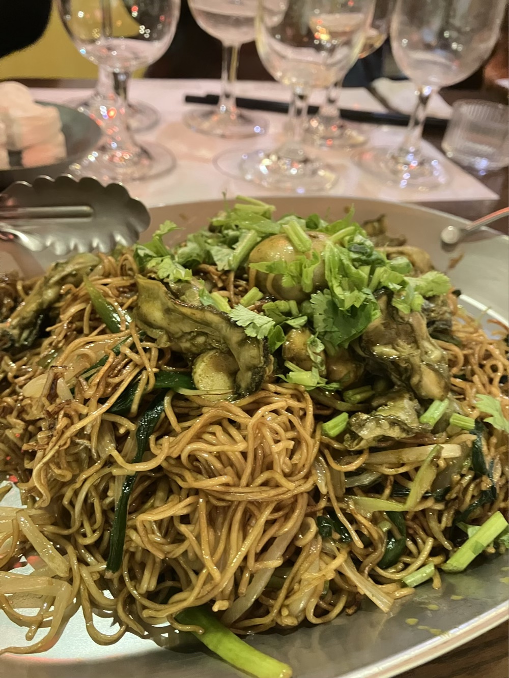 生牡蠣、茹で牡蠣、ポタージュ、サラダ、キッシュにアチャール、米揚げ、焼売、炒麺!ブラボー!
