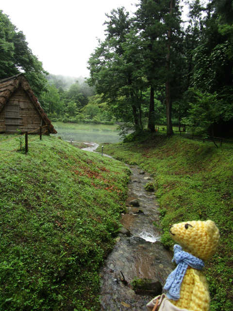 湯涌温泉で一泊。朝靄のかかる温泉街を歩いて玉泉湖まで散策。現役の氷室もあるいい風景。