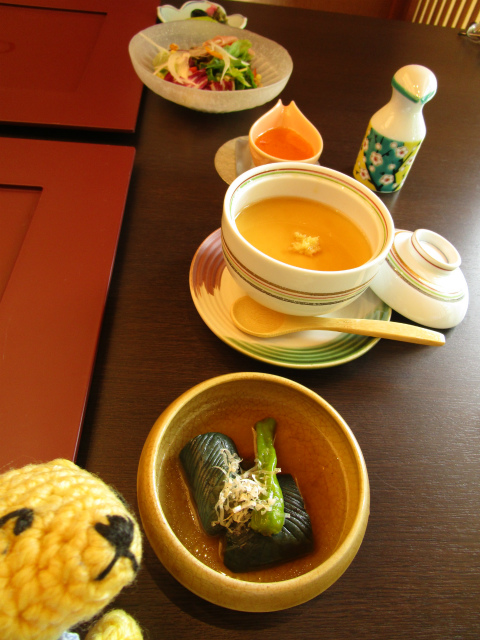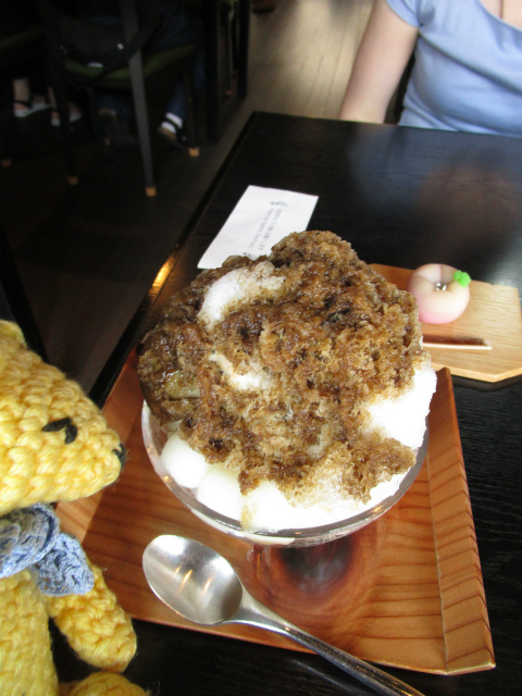 12:15 ひがし茶屋街 茶房素心 焙じ茶かき氷白玉トッピング 季節の上生菓子