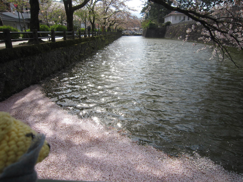 こちらは小田原城のお堀の花筏。風が強すぎてもうほとんどなくなっていました。