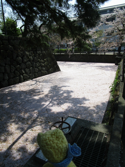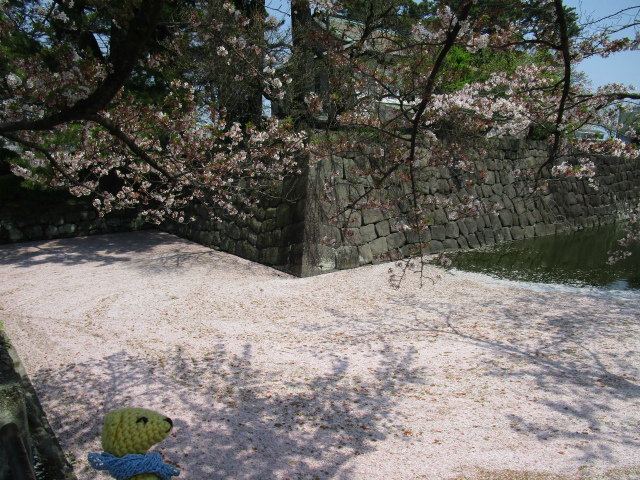 お堀の花筏。水面は見えないくらい敷き詰められたピンクの花弁。
