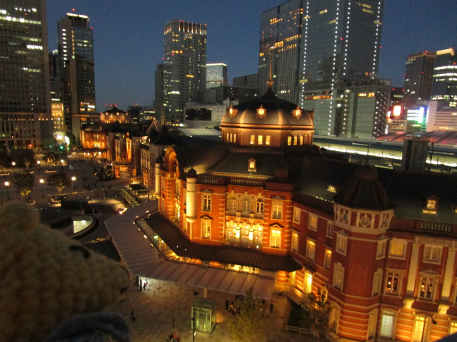 そして駅のほうを見ると美しくライトアップされた駅舎がくっきり。綺麗でした。