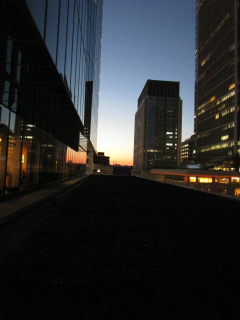 先日KITTEの屋上庭園に行ったら、ちょうどきれいな夕日が沈むその瞬間。